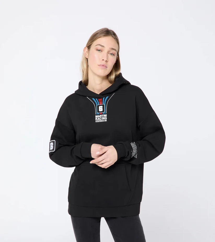 Porsche 936 ilhamlı, MARTINI RACING® detaylı, sportif-şık unisex hoodie